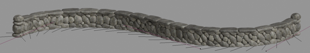 Procedural dry stone fence/wall working on a curve.